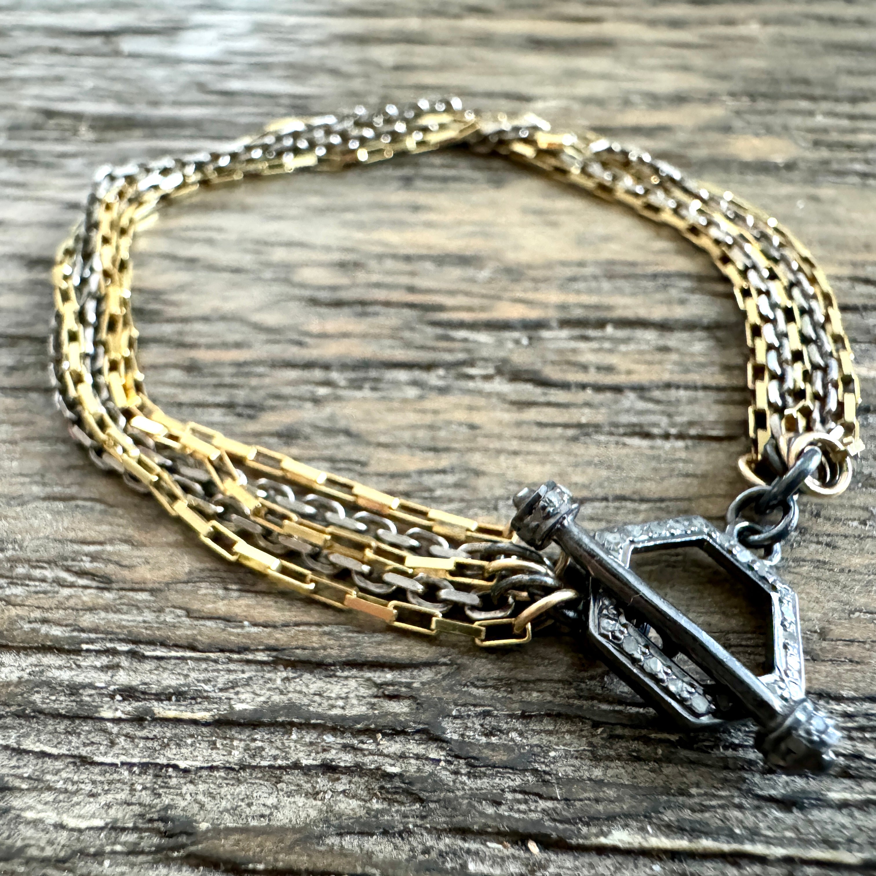 A detailed and beautifully constructed bracelet - the combination of the gold and silver chain is lovely, and the diamond t-bar clasp is the most fabulous finishing touch! As ever, the bracelet was attractively packaged and was shipped incredibly quickly - it is this combination of unique and beautiful OOAK jewelry and outstanding service that keeps me coming back for more of Nikki’s exceptional pieces :)