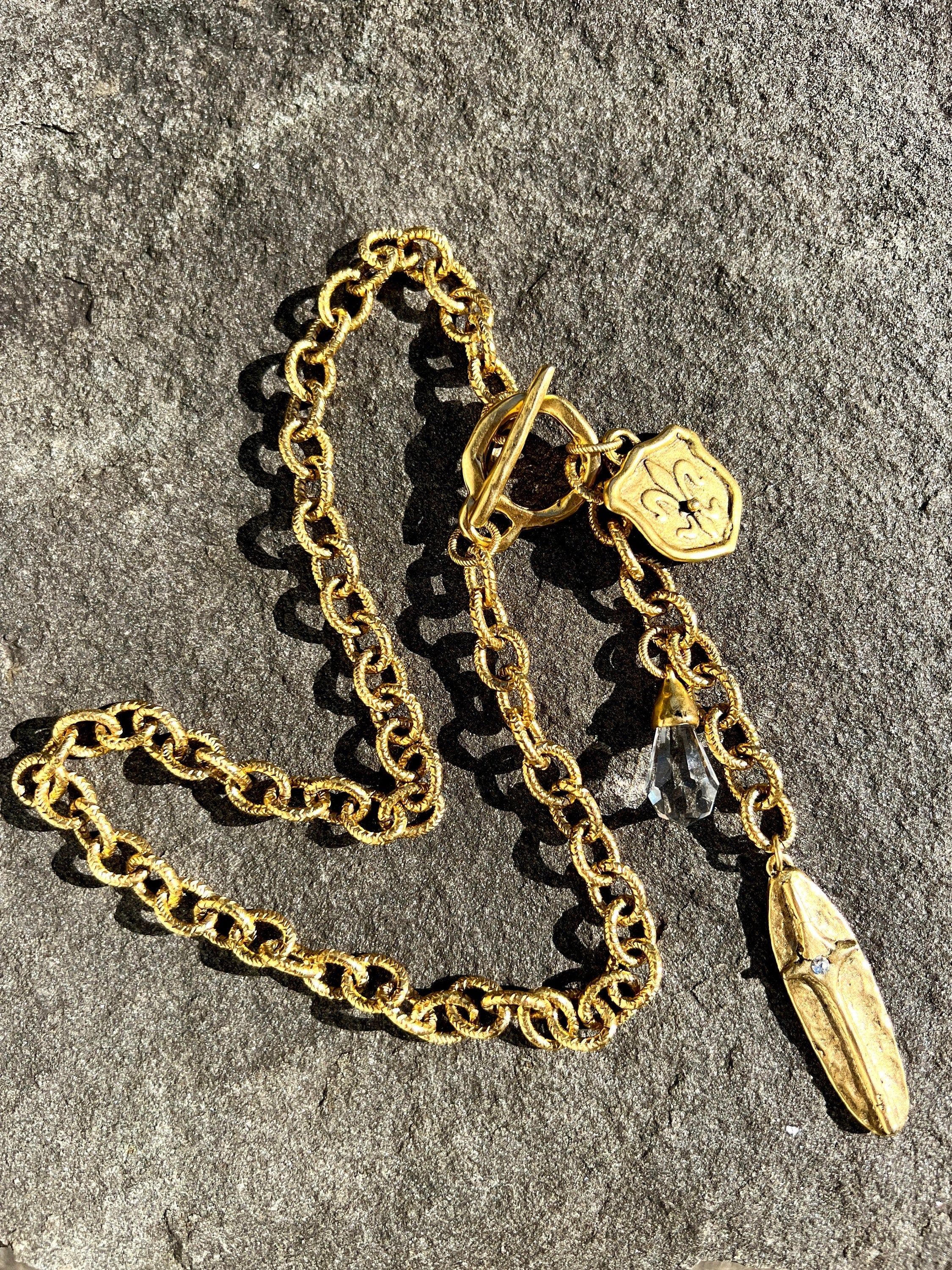 Gold Chain Link Cross Charm Lariat Statement Necklace