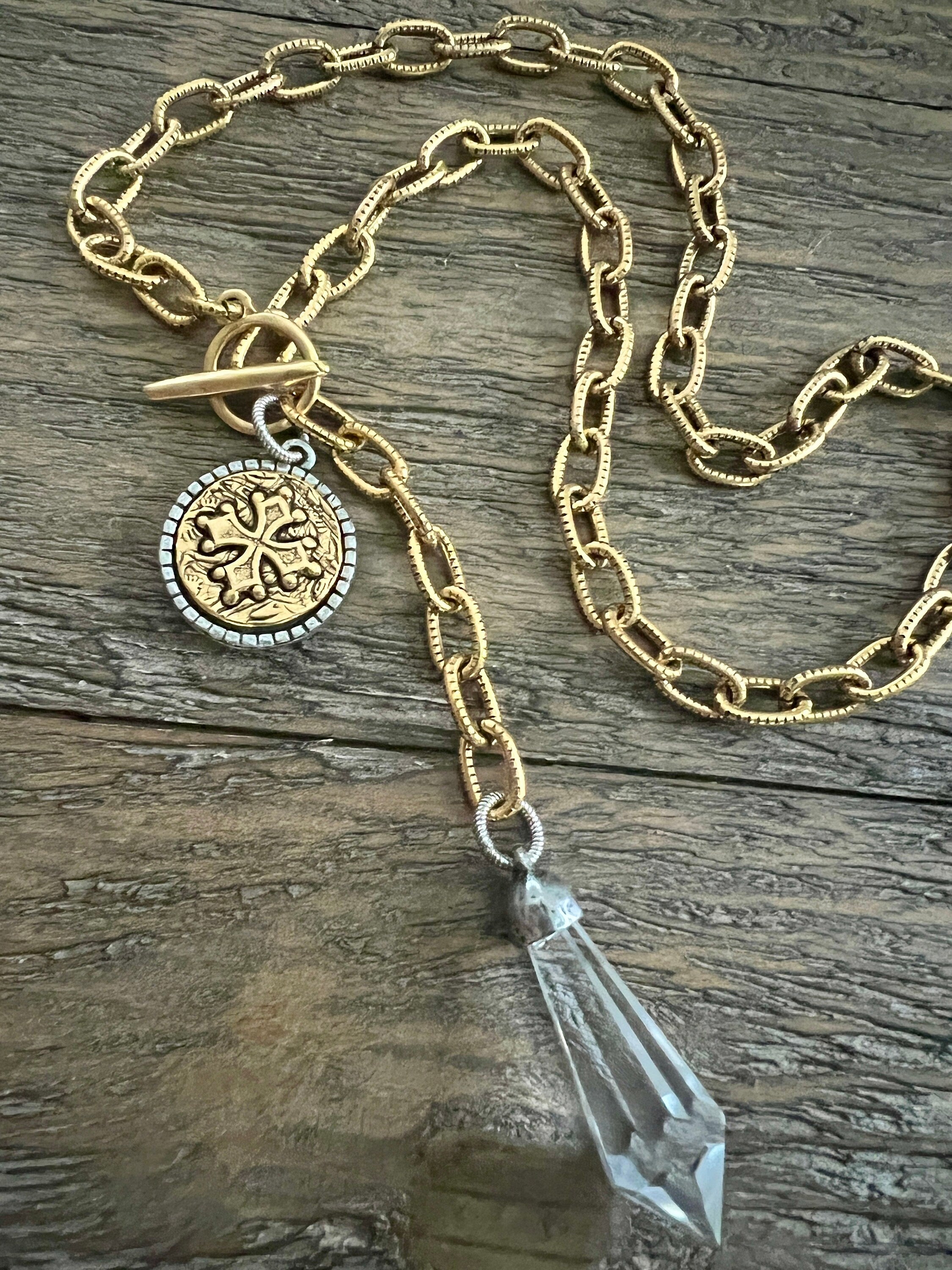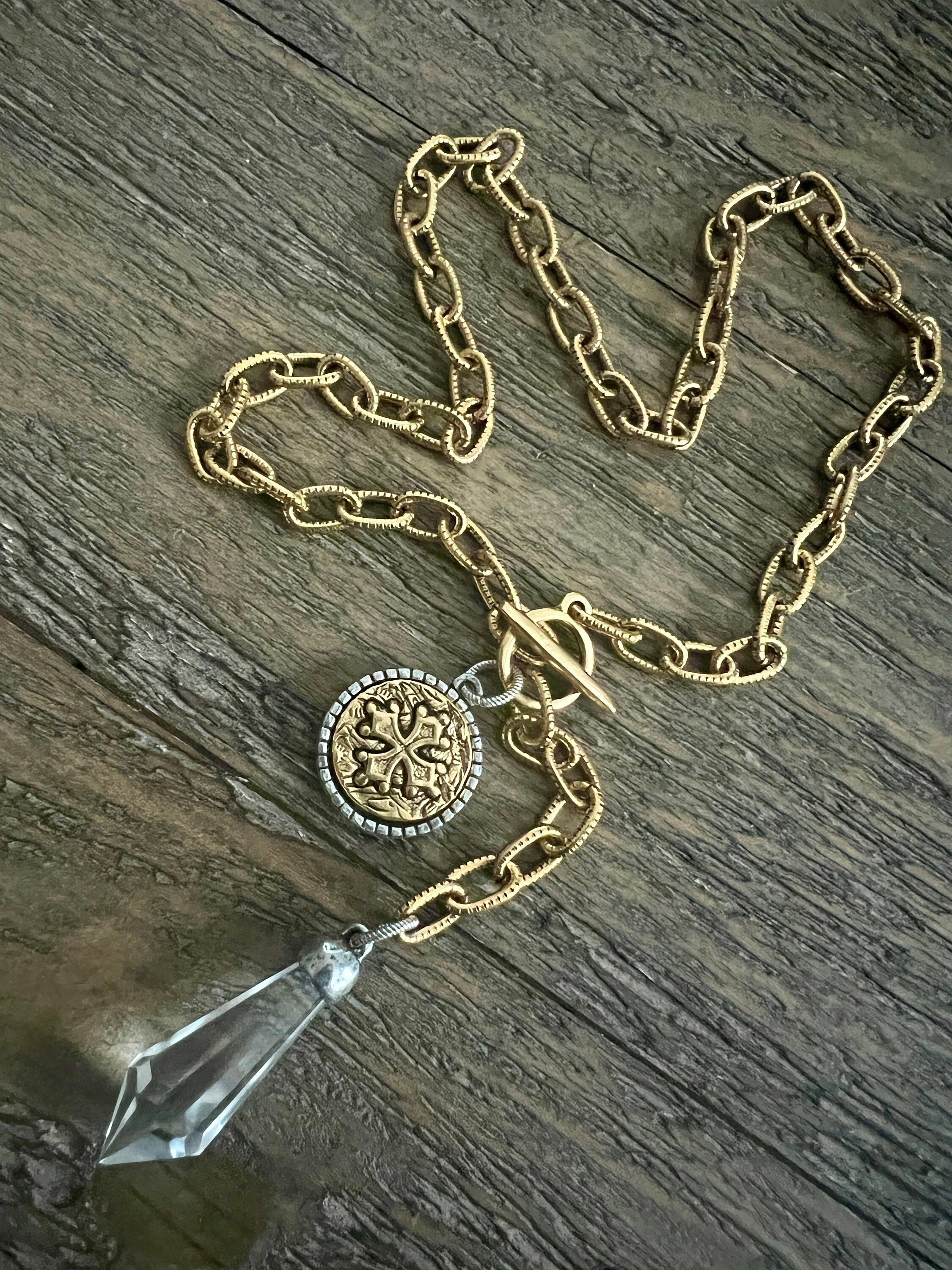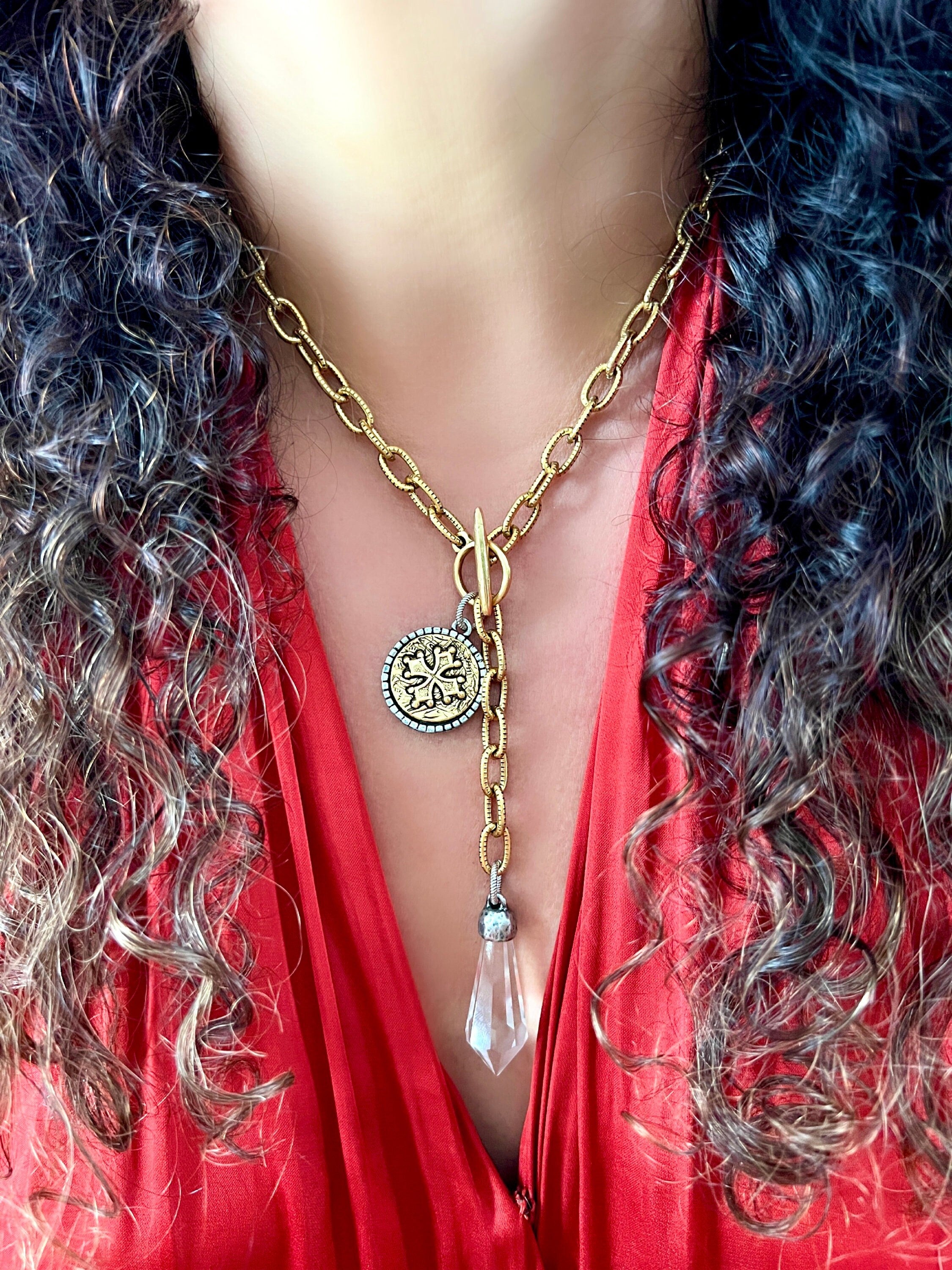 This gorgeous, one-of-a-kind statement lariat toggle necklace features: