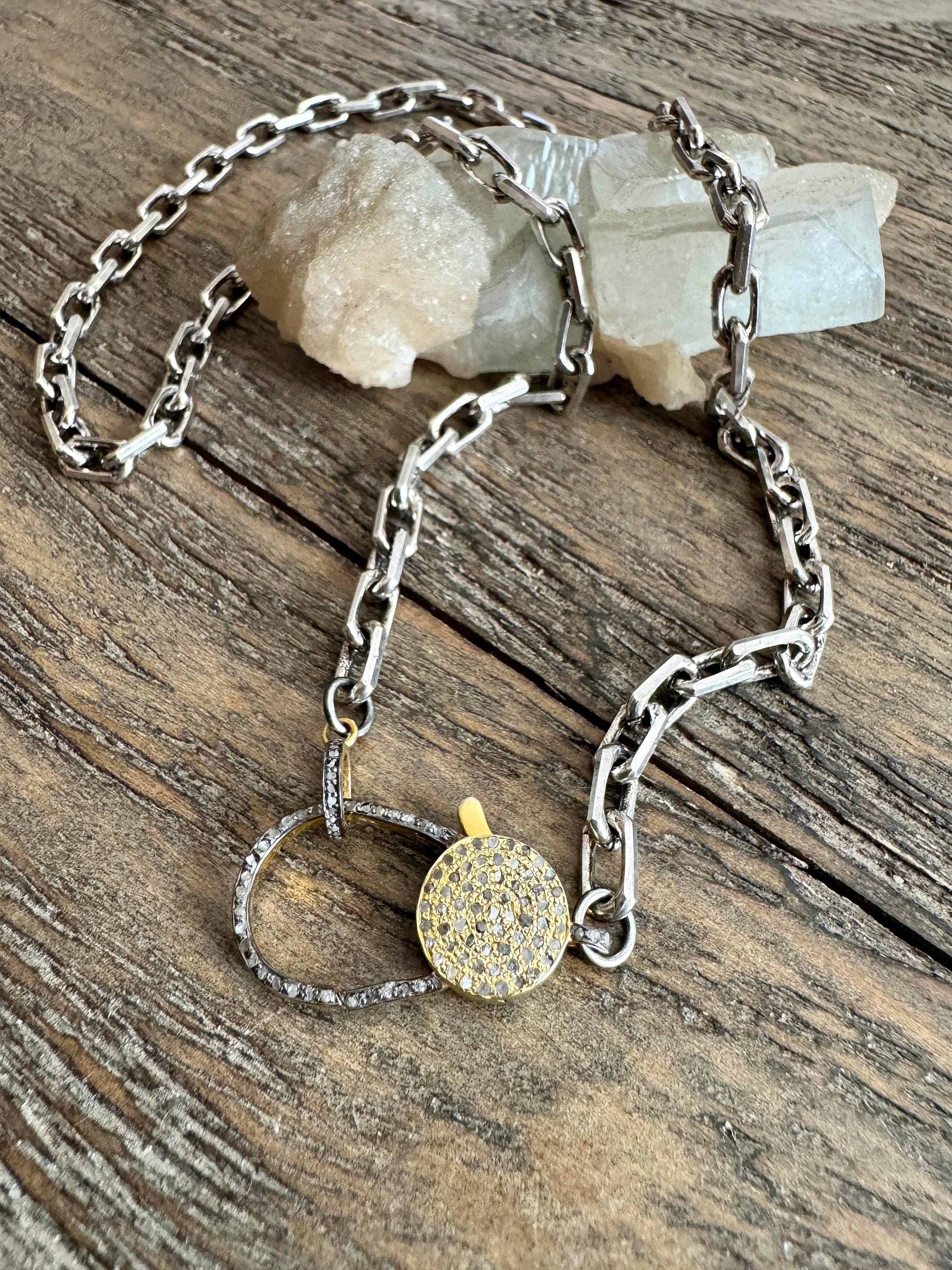 Sterling Silver Chain 18k Gold Vermeil Pave Diamond Necklace Wrap Bracelet