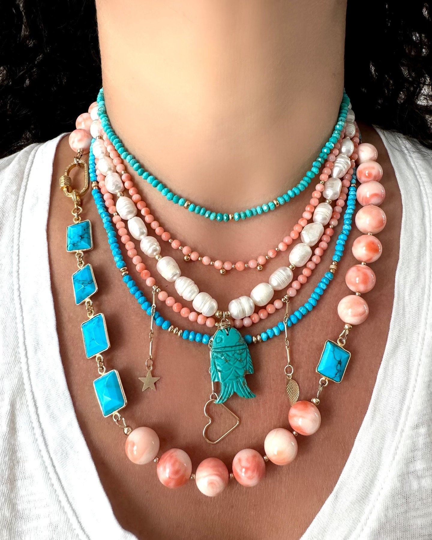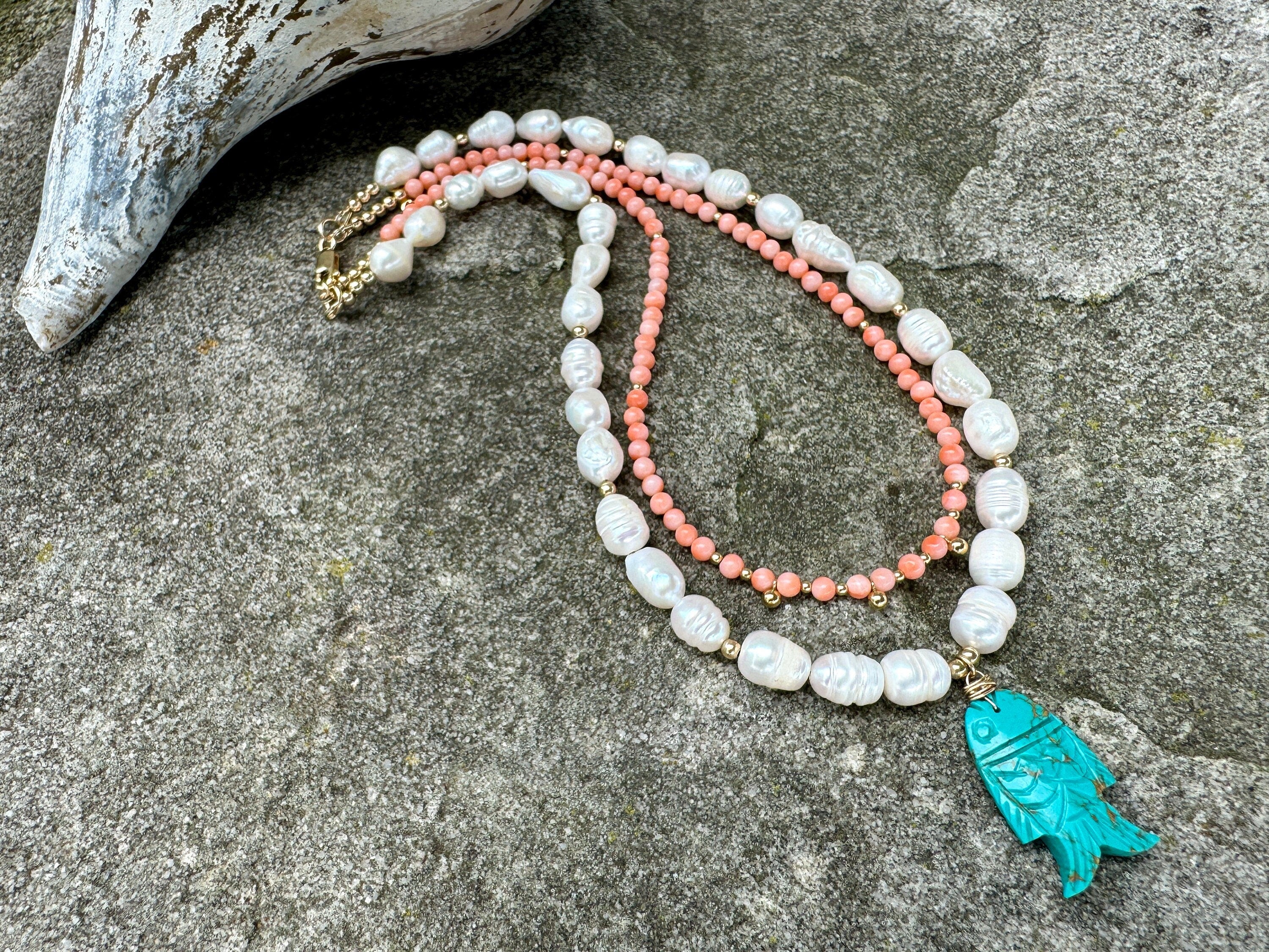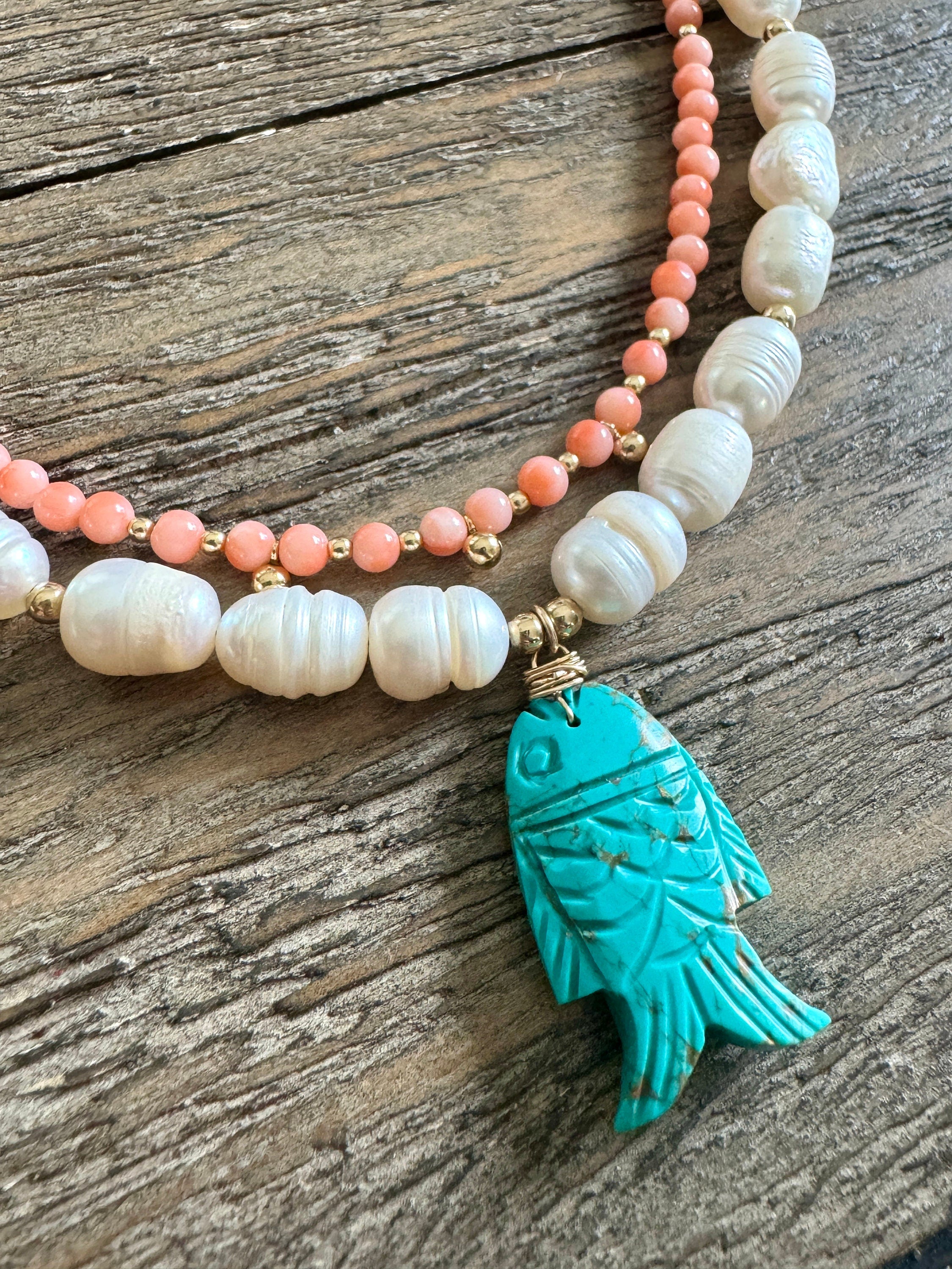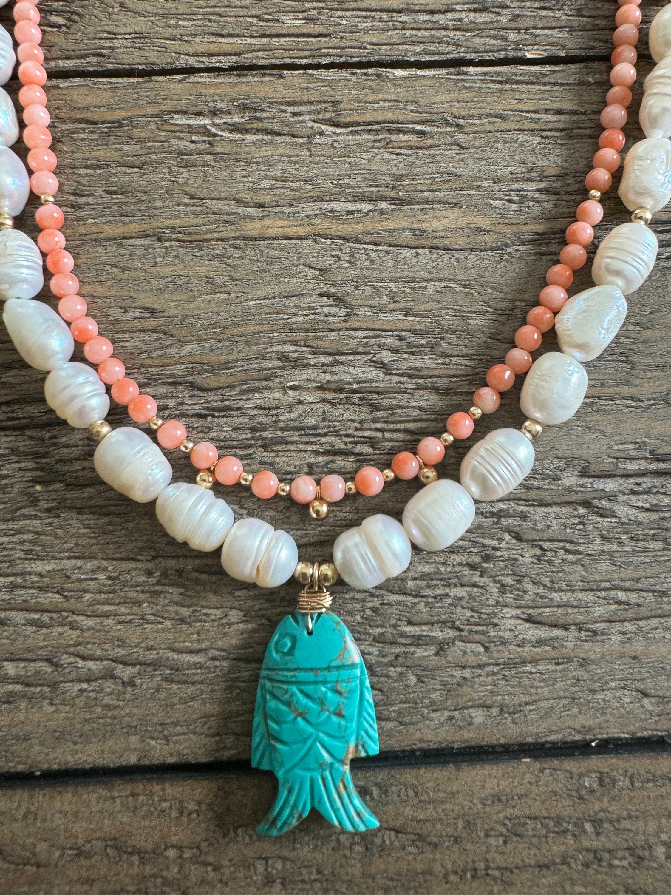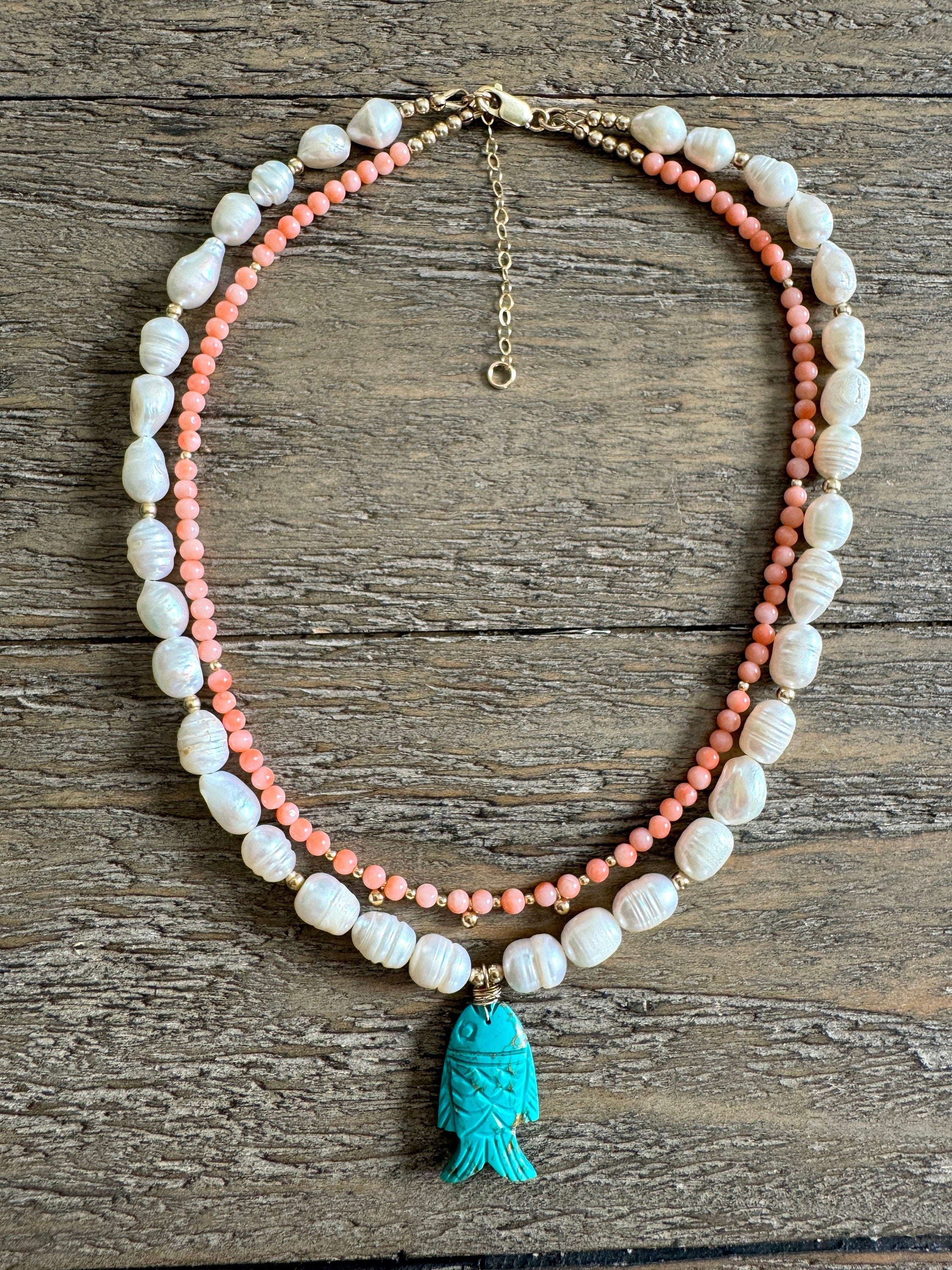 Double Layer Pearl Vintage Coral Turquoise Beaded Necklace