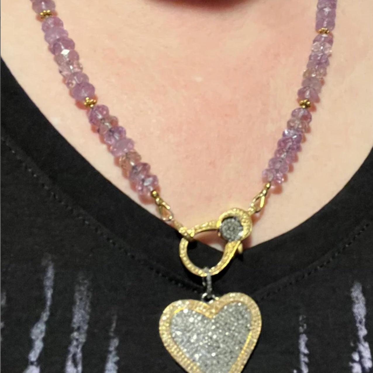 This is a simply stunning necklace - it is beautifully made, with attention to every detail apparent in this amazing piece. It is gorgeous when worn on its own, but it is also a wonderful way to showcase a treasured pendant. I am delighted with this purchase, and I could not be happier to have this necklace in my collection. Needless to say, as a (multiple) repeat customer with this vendor, I highly recommend them for their outstanding jewelry and excellent service - and they are just marvelous to deal with: shopping with Nikki is a true pleasure :)