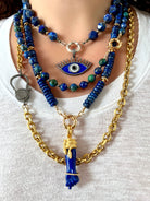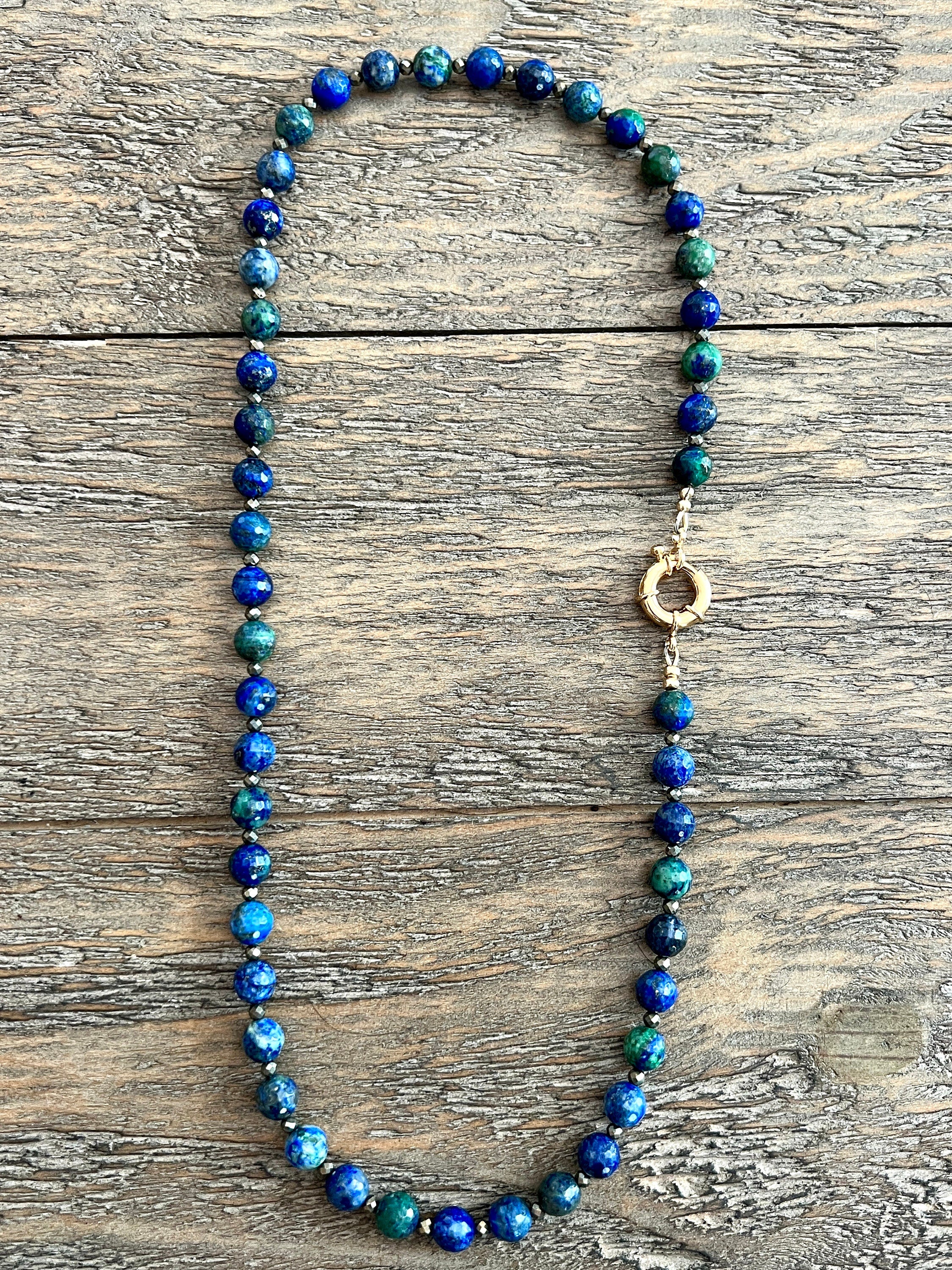 Azurite Malachite Chrysocolla Pyrite Long Gemstone Beaded Necklace
