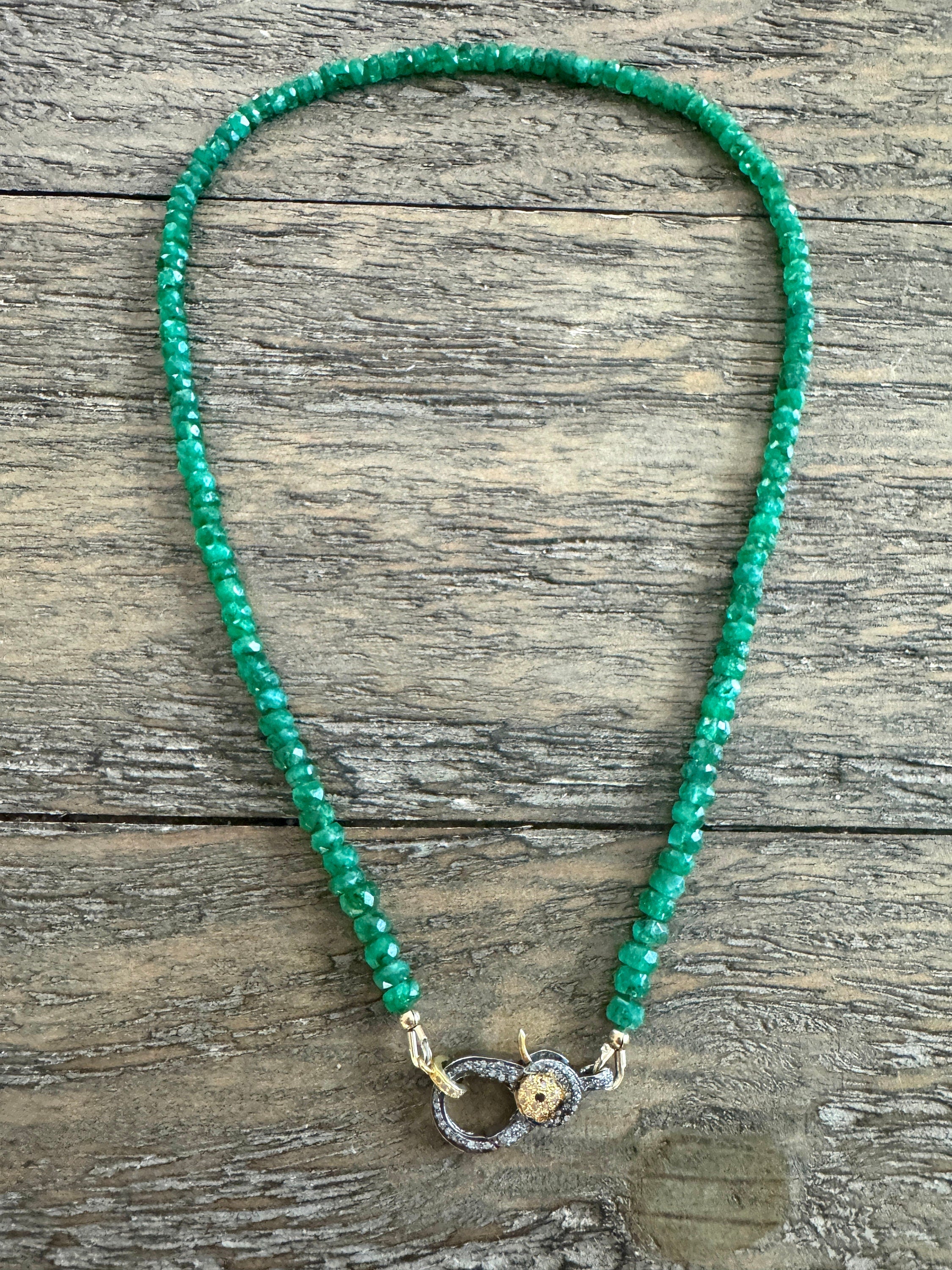This exquisite, one-of-a-kind, precious gemstone necklace features faceted green emeralds in a 4mm rondelle.