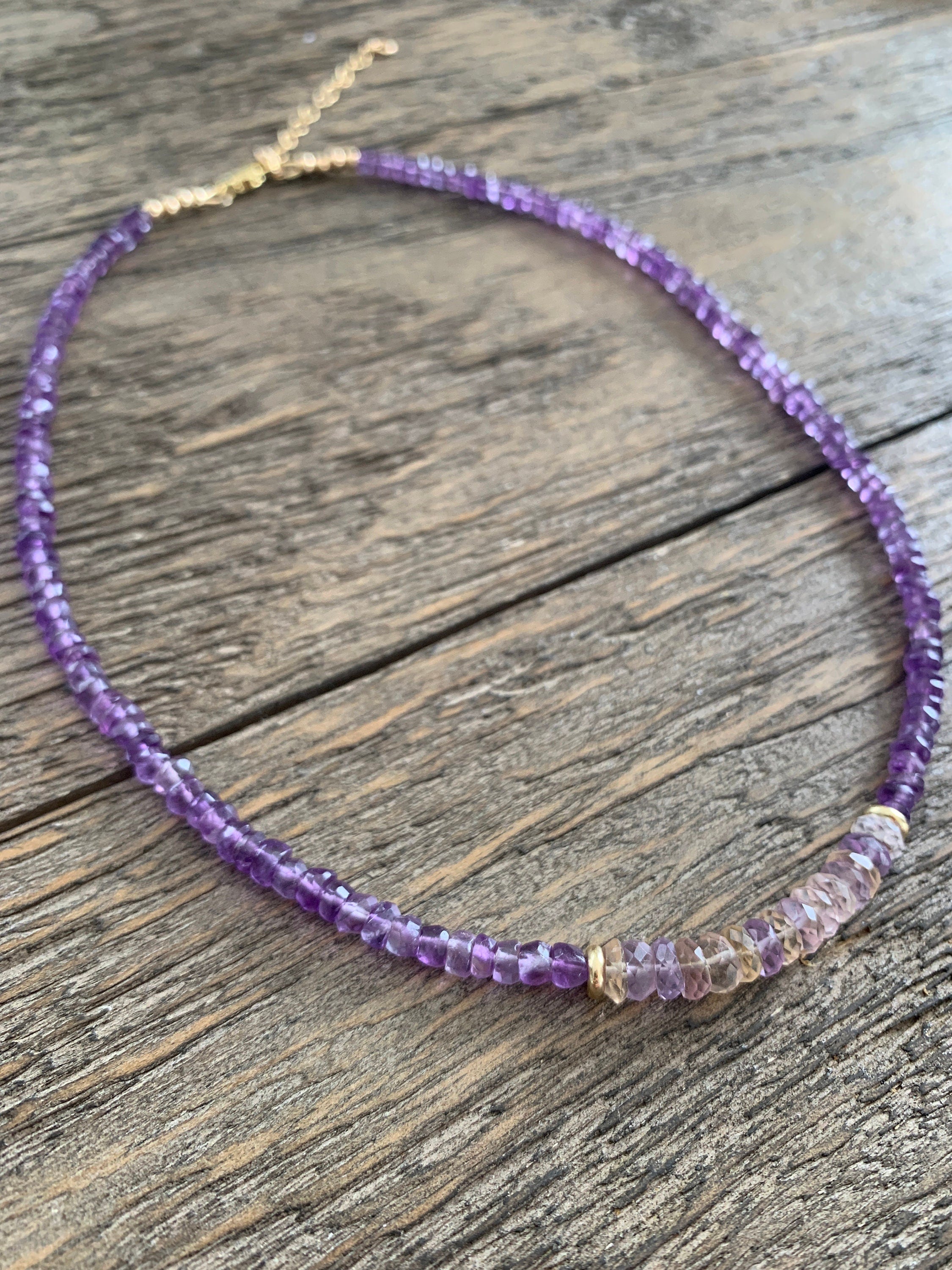 Faceted Amethyst Ametrine Beaded Gemstone Necklace