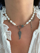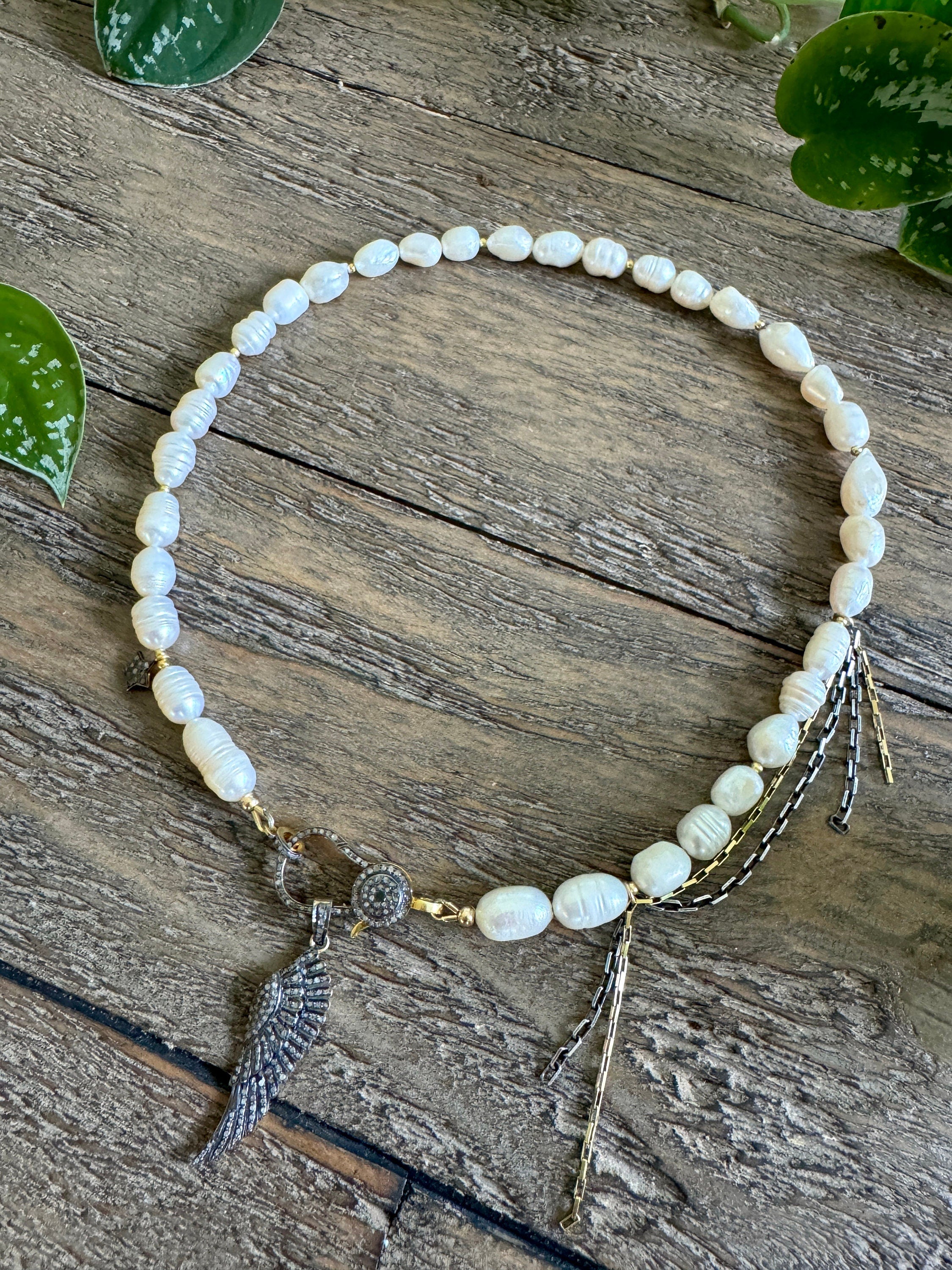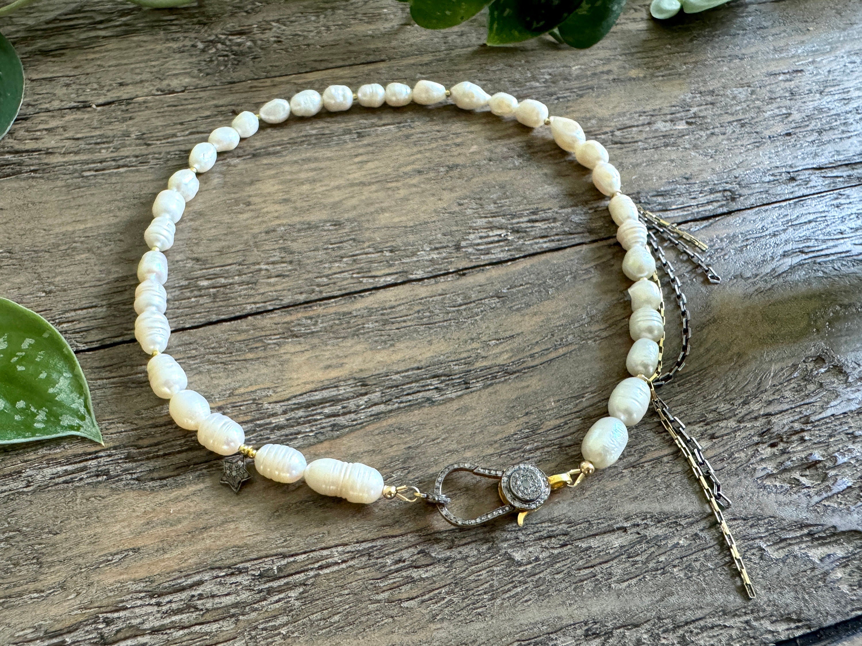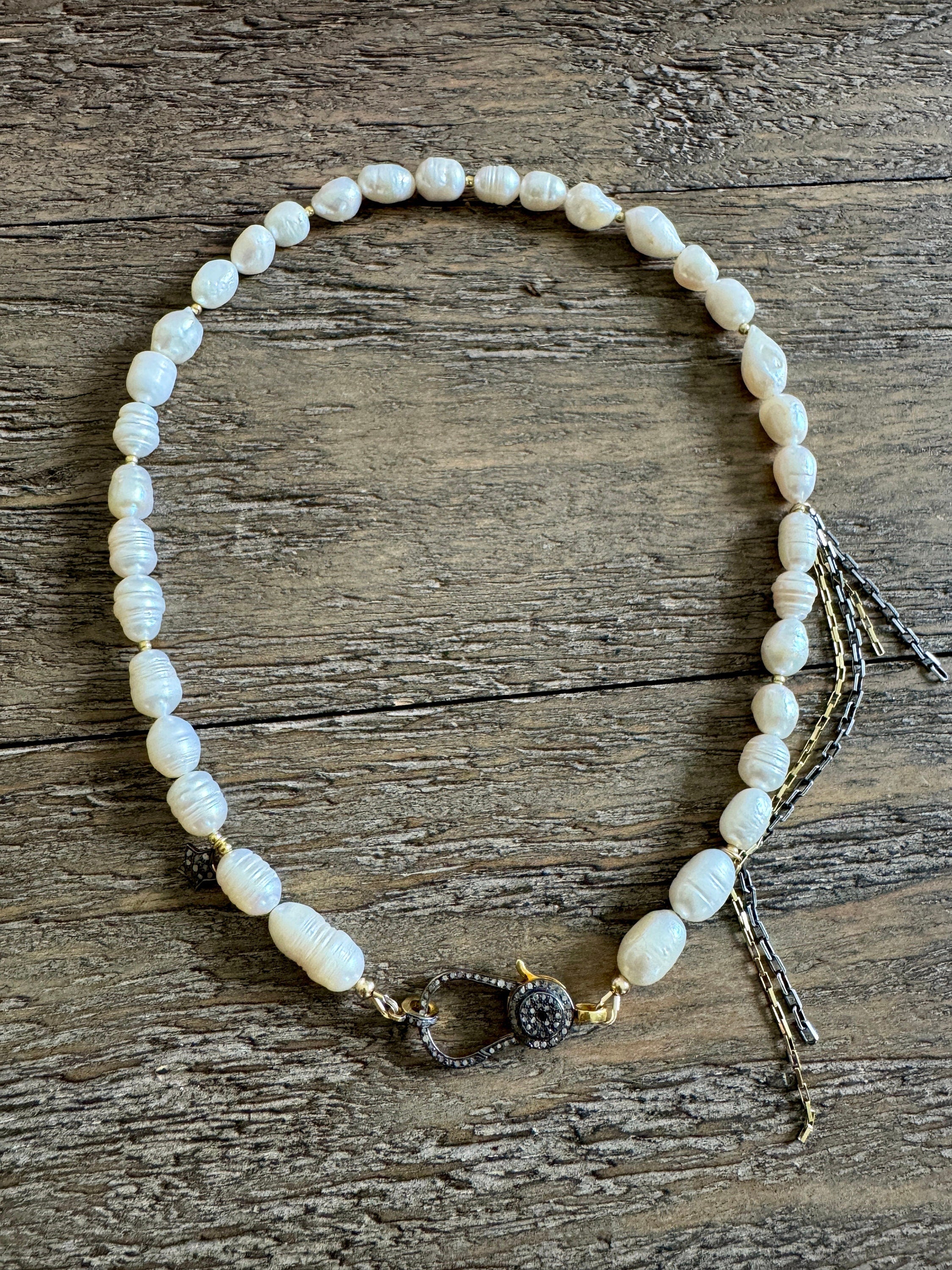White Freshwater Baroque Pearl and Pave Diamond Statement Necklace